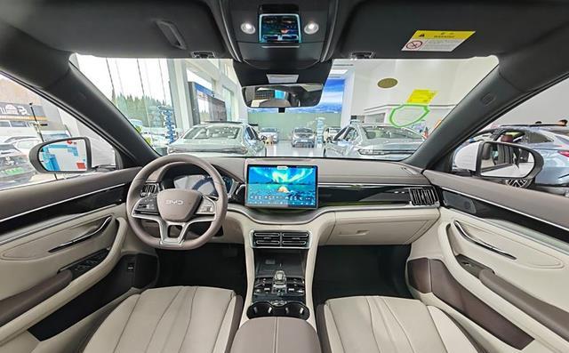 比亚迪宋PLUS DM的内饰传统很多,很好保留实体控制按键和仪表,小巧电子换挡机构还支持旋转12.8英寸悬浮大屏,也有一定的科技感,但是中控分辨率相对来说也要差一些,而且在车机芯片方面比亚迪使用的是D100芯片,虽然说也能够支撑一般的功能,但是上限并不高。